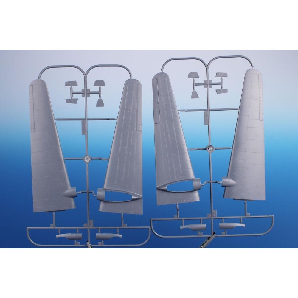 • The kit consists of 10 grey styrene sprues plus two clear ones, a sheet of decals with markings for three German airframes.