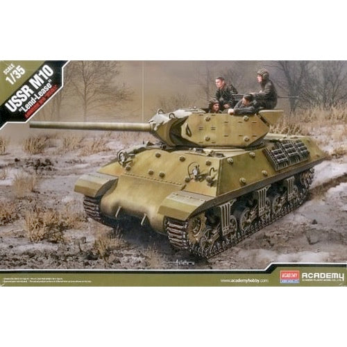 Academy's model kit of the USSR M10 tank destroyer "lend-lease" comes with five tank crew figures to bring it to life! It also features accurately reproduced 3-inch main gun, .50 caliber machine gun, crew compartments, and other fine details. Photo etch parts are included.