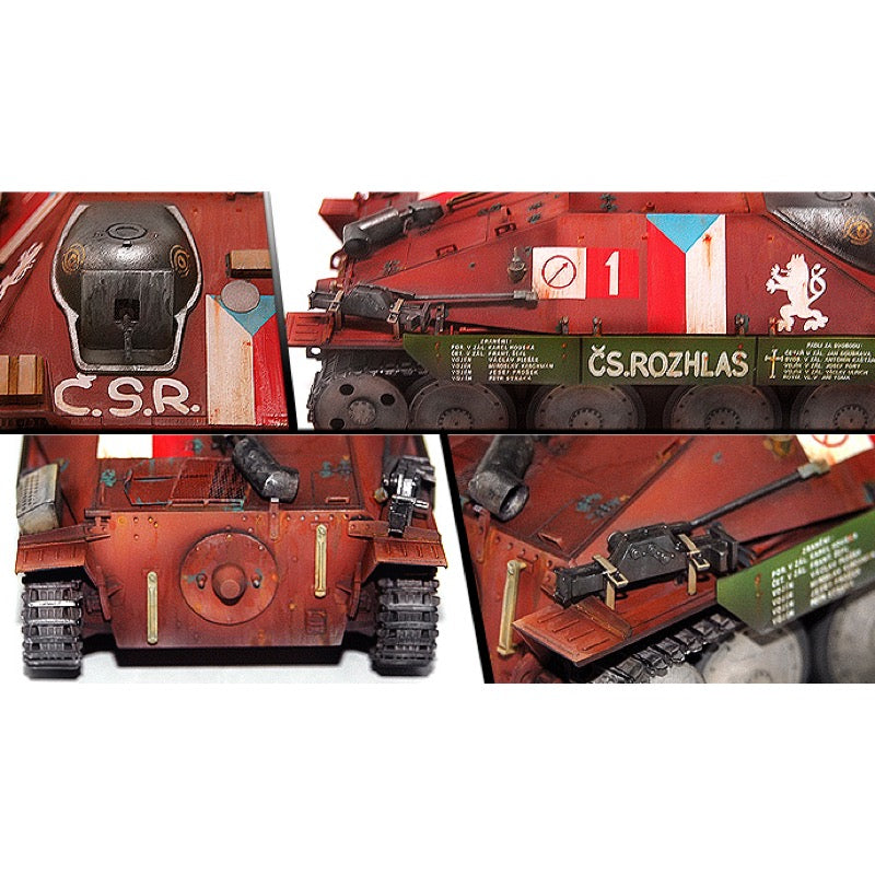 The Hetzer was produced primarily by the Škoda factory in occupied Czechoslovakia, with over 2,800 units built between 1944 and 1945. It saw action on both the Eastern and Western Fronts and was praised for its mobility, concealment, and reliability. After the war, Czechoslovakia continued to produce and operate the Hetzer under the designation ST-I, using it well into the postwar years. Its service during the Prague Uprising of 1945 makes this variant historically significant and a favorite subject for modelers and military history enthusiasts alike.