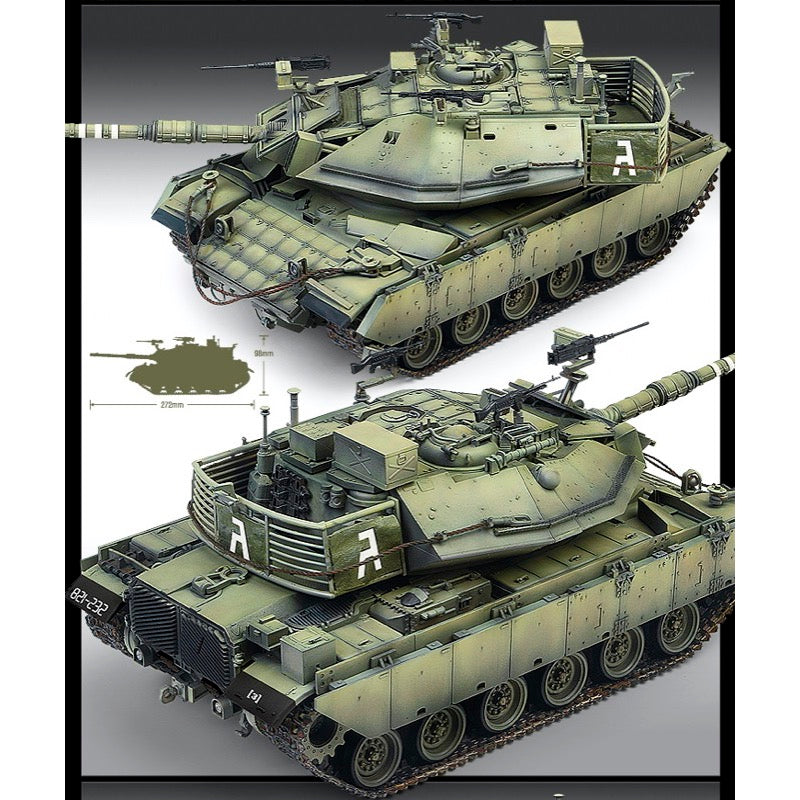 The Academy kit represents the Magach 6B Gal Batash, deployed in the 1980’s. Some notable features of this vehicle include modified sloped turret sides and mantlet. While the tracks were sourced from the newly introduced and indigenously designed Merkava tank that had just gone into service with the Israeli Defense Force. With a continued series of upgrades throughout the 1980’s and 90’s the type was gradually replaced in front line service by the Merkava with the last ones being retired from regular units in 2006.