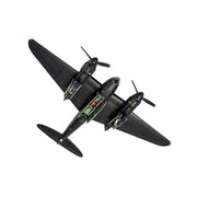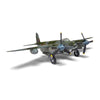 Combining the power of these fearsome weapons with the legendary speed and bombing accuracy associated with Mosquito operations allowed Bomber Command to keep the pressure on the enemy throughout the latter stages of WWII. Interestingly, these huge bombs were exactly four times the weight of the original bomb load this exceptional aircraft was designed to carry, which is testament to the strength of the Mosquito's construction techniques. Optimised for high altitude operations, this final major bomber variant of the Mosquito could be powered by several different 'seventy series' versions of the Rolls Royce Merlin engine, in addition to incorporating a modified wing, which could now accept either a 50 or 100 gallon paper drop-tank on either side and up to four externally mounted 500lb bombs, further enhancing the strategic capabilities of this superb aircraft.