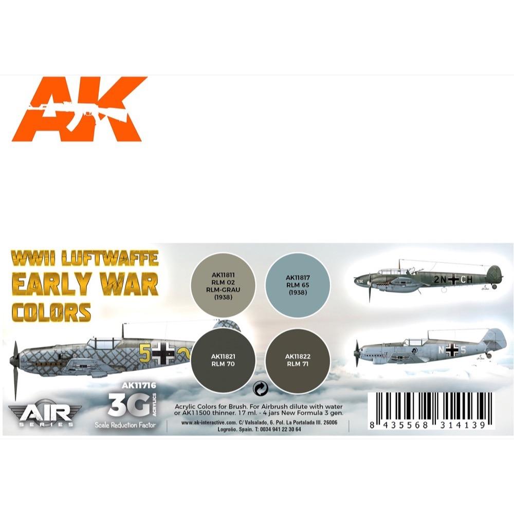 AK Interactive AK11716 Air Series WWII Luftwaffe Early War Colors Acrylic Paint Set (3rd Generation)