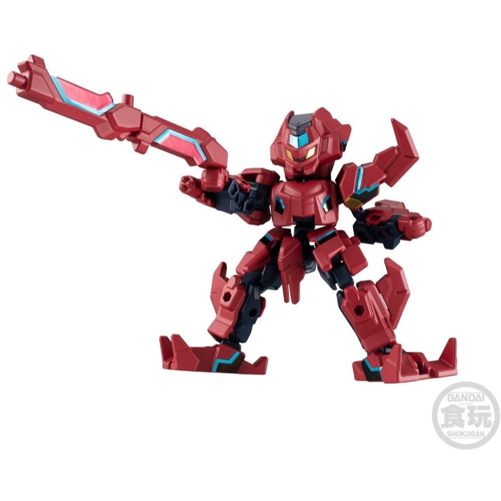 Bandai's latest "Anima Gear DE" (Double Edge" is on the loose! These posable figures consist of three elements: a super-posable "bone frame," an armored "neck cowl," and "blood stickers" that attach to the neck cowl. The parts remove easily by hand without the need for tools, too! The neck cowl is jointed with base head parts attached, so you can customize them just as you like. Each figure comes with a piece of soda-flavored gum, too. There are five different types, and they're randomly packed in boxes of five.
