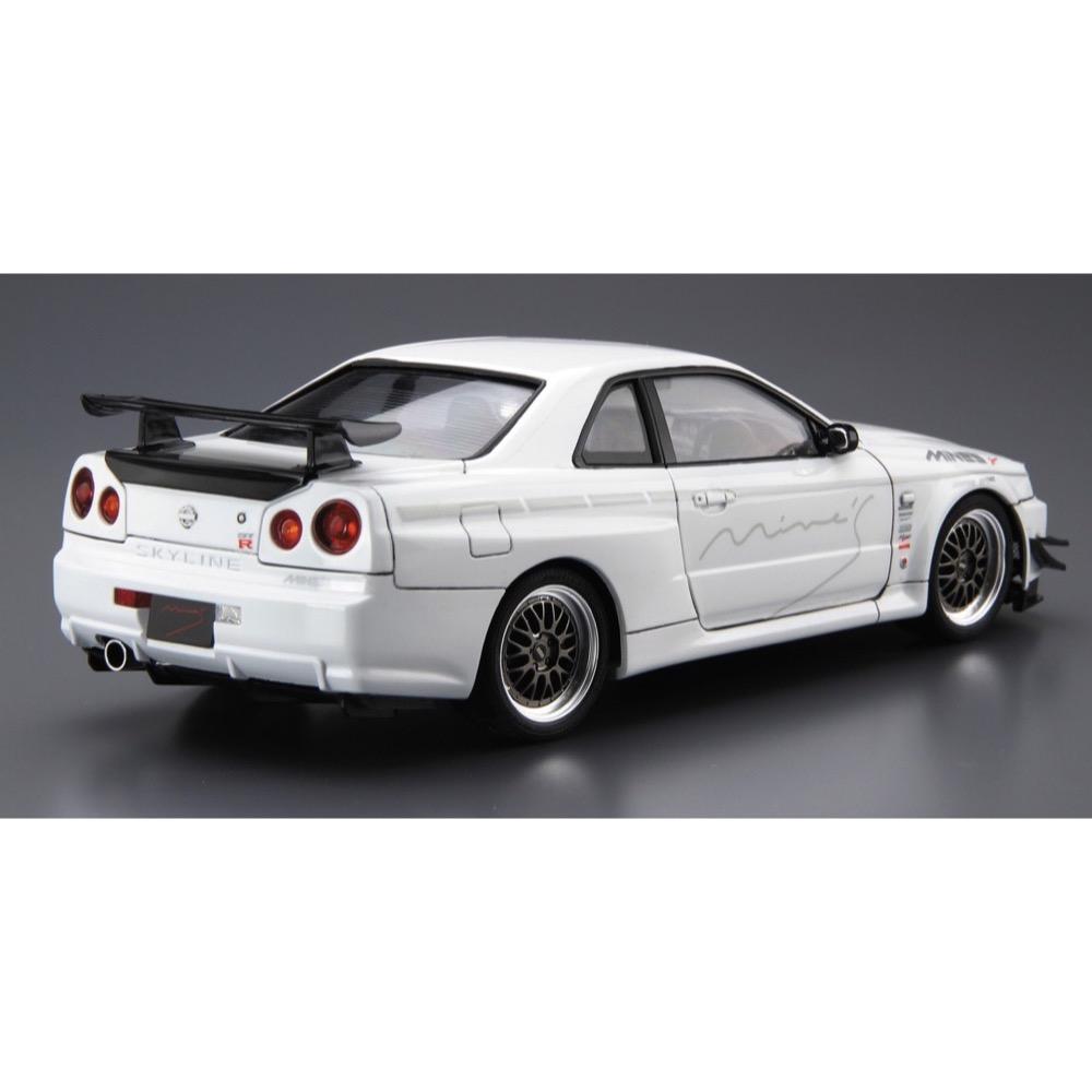Aoshima's model kit of the 2002 BNR34 Nissan Skyline GT-R with Mine's aero bodykit