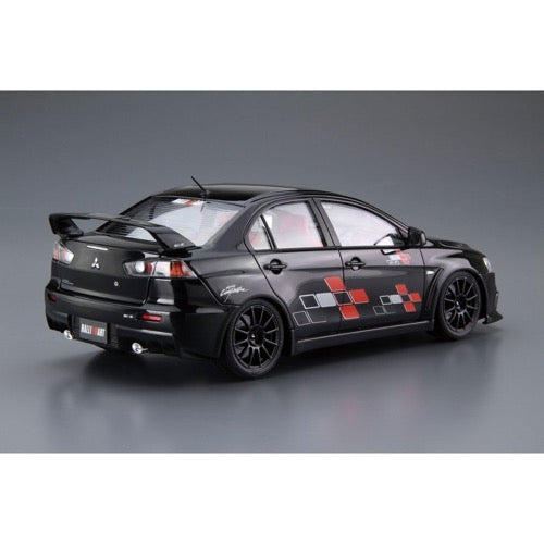 Aoshima's kit of the 2007 Mitsubishi CZ4A Lancer Evolution X comes with full aero specifications by Ralliart!