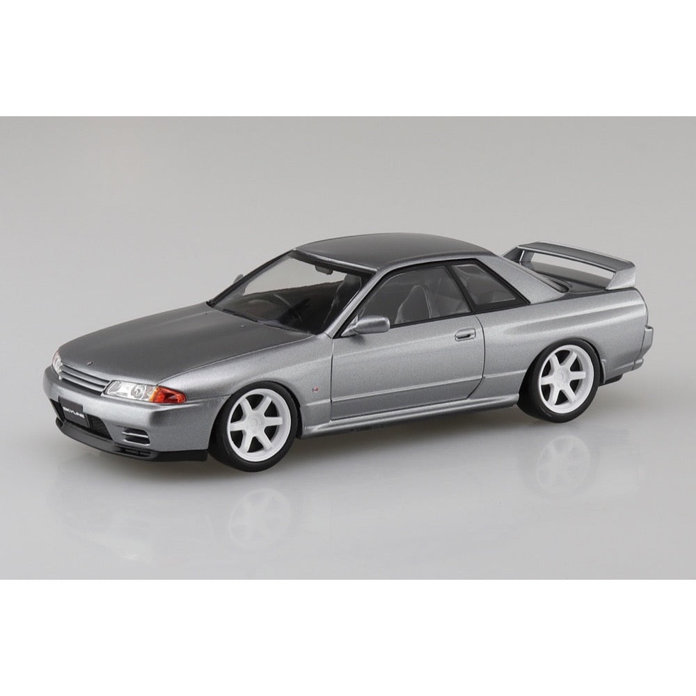 New custom wheel specifications have been added to Aoshima's popular model kit of the Nissan R32 Skyline GT-R! These kits feature 18-inch custom wheels and custom tires; you can recombine parts with R32 and R34 model kits, too. The wheel color is different for each body color. These kits are easy to assemble with just 25 parts that snap together, and the parts are cast in color so you don't need to paint them! The kit can be assembled to lowdown specifications, too.