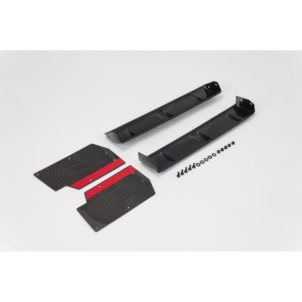 • Includes high and low downforce wings, wing endplates and wing attachment fasteners