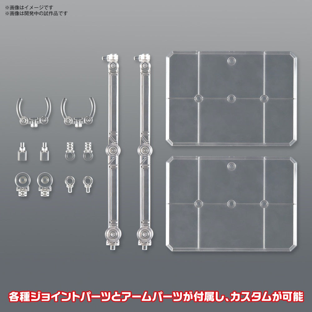 Bandai presents its seventh action base, with a simple design for ease of use! The structure allows stable holding of 1/144-scale models, and the movability of each axis supports display in a wide variety of poses! Various joint parts and arm parts are included, and can be customized; this base can hold a model of large volume with great ease. It's structured with an emphasis on strength and stable support of airborne poses.