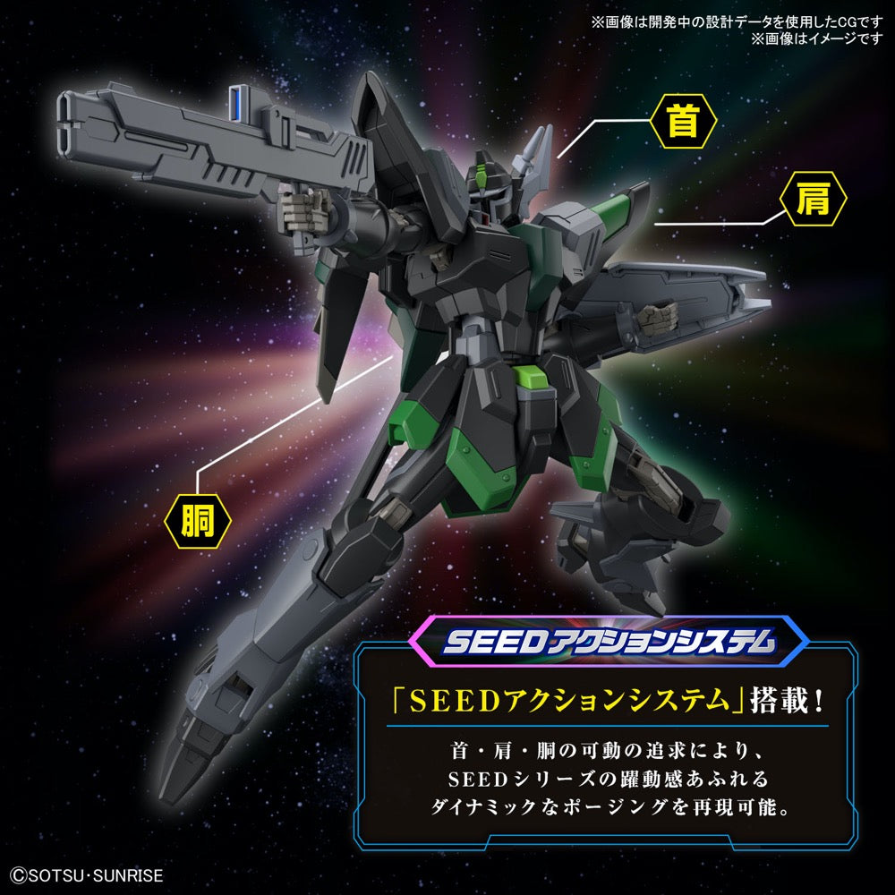 It's equipped with the "Seed Action System" internal structure that specializes in reproducing impressive action poses, and it comes with a large sword that's nearly as tall as it is! The sword can be mounted on the arm of the backpack, and the beam rifle can be mounted to the waist. The beam cloak is made of soft material with gradation printing, and since the parts are molded in color, you'll get a great-looking result just by assembling it.