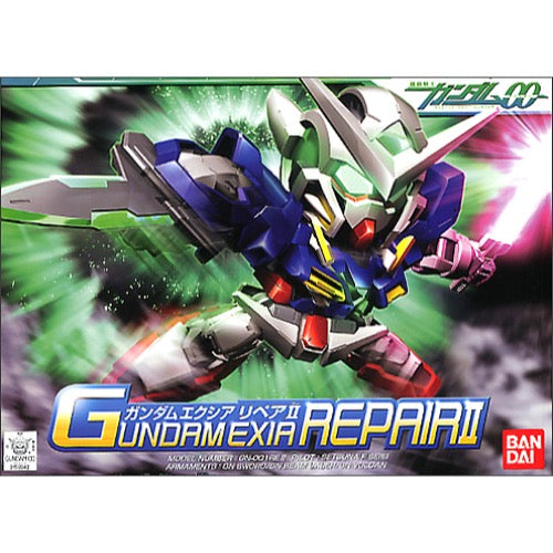 Super little super-deformed Gundam Exia Repair II, molded in colored plastic and featuring snap-fit assembly. Great for younger modellers, beginner modellers, or anyone who just wants to keep his or her hands busy for a while! Foil stickers are included for decoration.