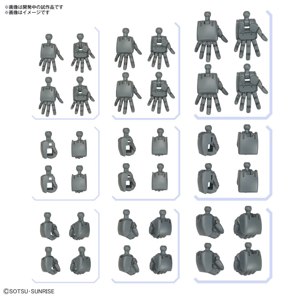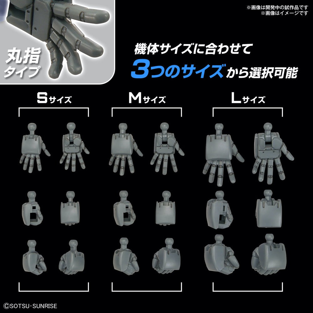 This option parts set from Bandai allows you to improve the expressiveness of your Gundam model kits with round-fingered hands available in three sizes! Two sets of hands are included in three sizes: small, medium, and large, for a total of 36 hand parts. Includes fists, flat hands, and weapon-holding hands. The weapon-holding hands can use items with a 4mm x 2mm grip, or a 3mm-diameter saber grip.