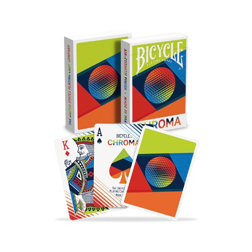 The Bicycle® Chroma deck will magnify your flourishing with it's vibrant colors and an array of colorful shapes. Not only will your flourishes, fans and spreads be absolutely epic, but the intense depth and visual appeal of the Chroma playing card deck is stunning when you break it out for your favorite card game!