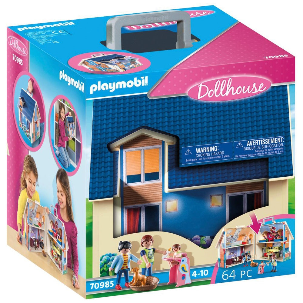 With lovingly designed figures and authentic details, imaginative playtime is guaranteed. The set includes two Playmobil figures and a baby, a puppy dog, a fold-out take-along doll house with four furnished rooms and lots of accessories. The doll house is light and practical and can be taken anywhere using the carrying handle.
