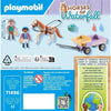 • Cute PLAYMOBIL horse toy set with two children figures, a pony, pony carriage, helmets, picnic basket, and other lovely extras.