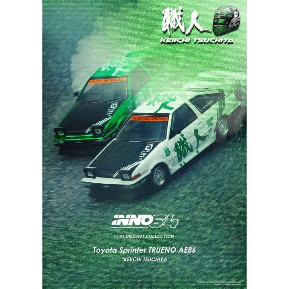 Inno IN64-AE86-KT 1/64 Toyota Sprinter Trueno Ae86 Keiichi Tsuchiya With Chase Car Limited Edition