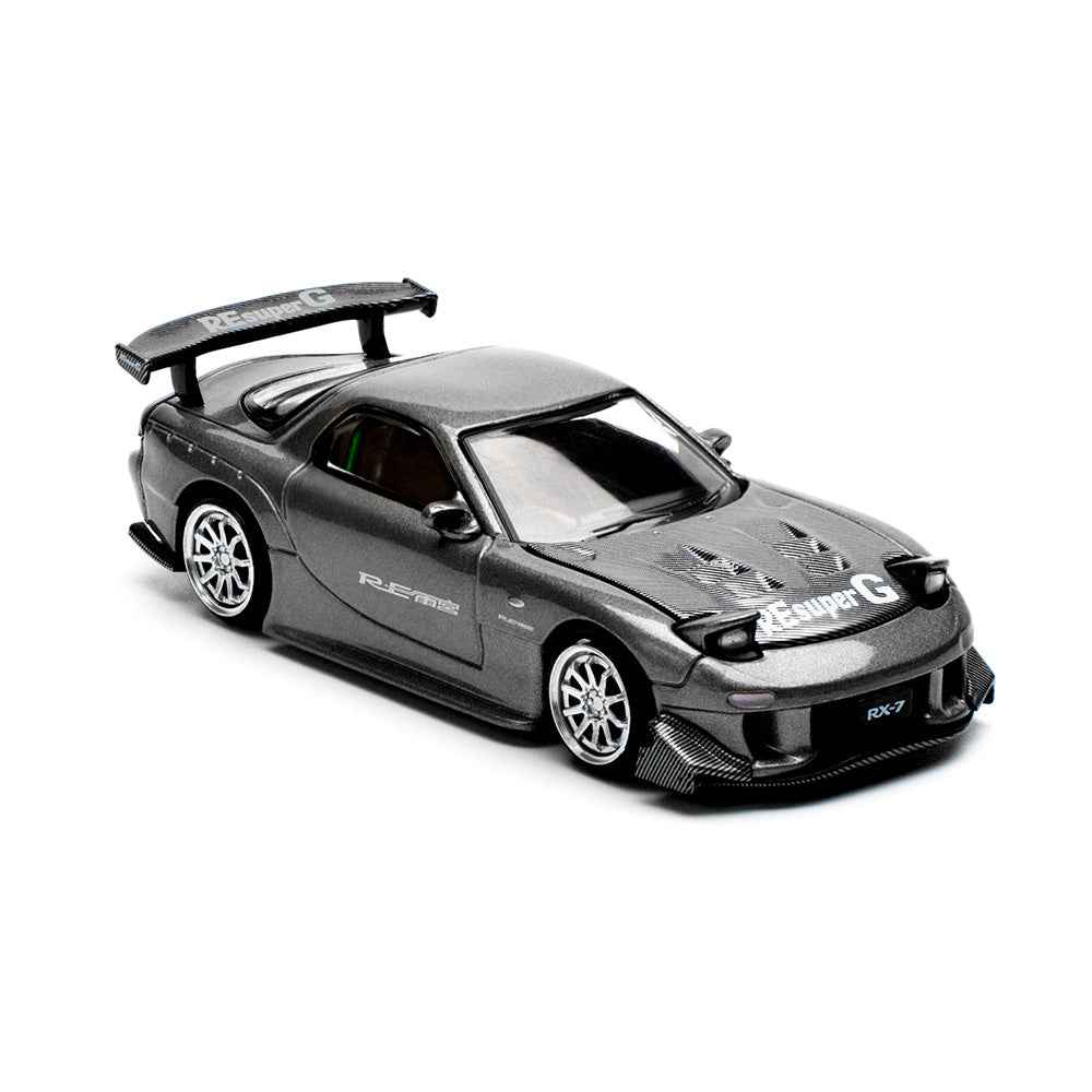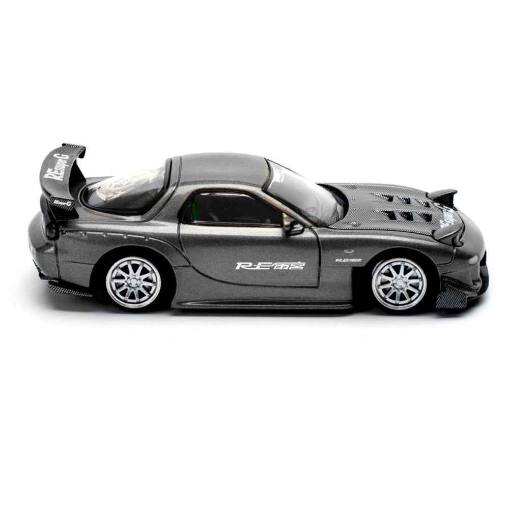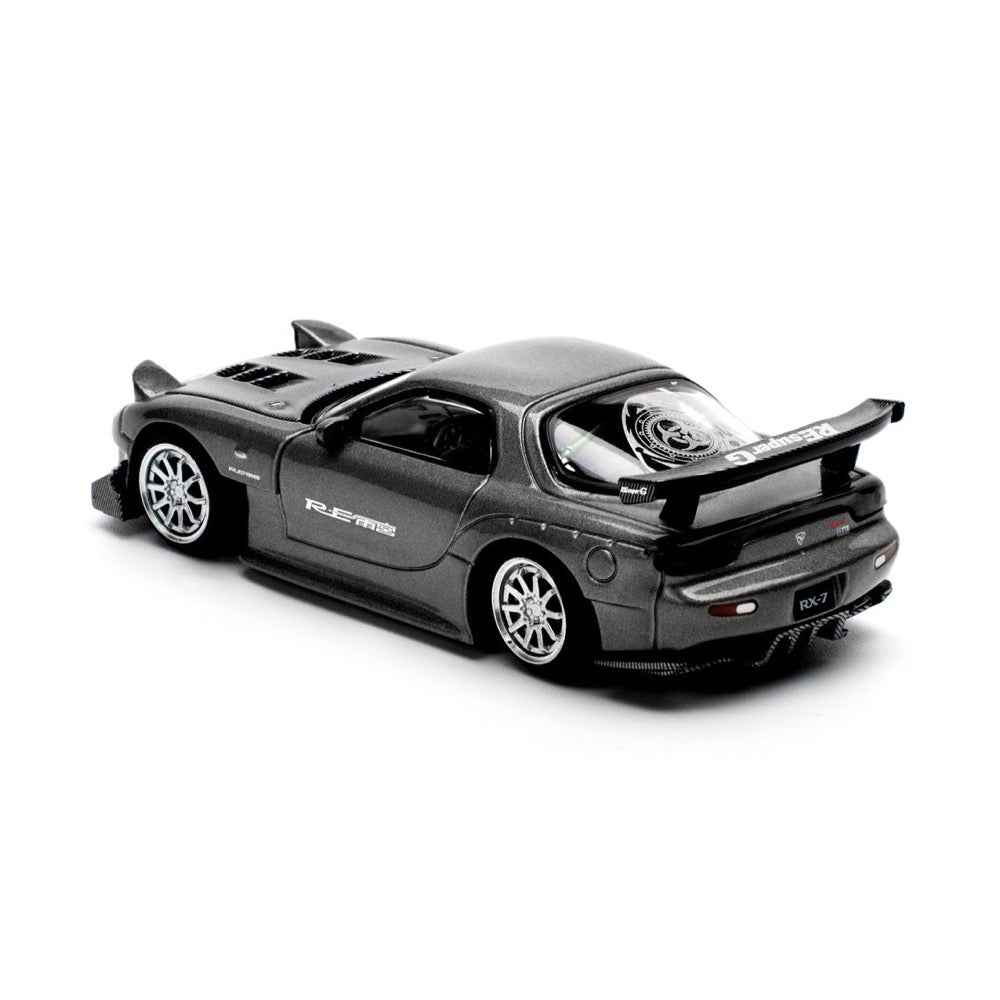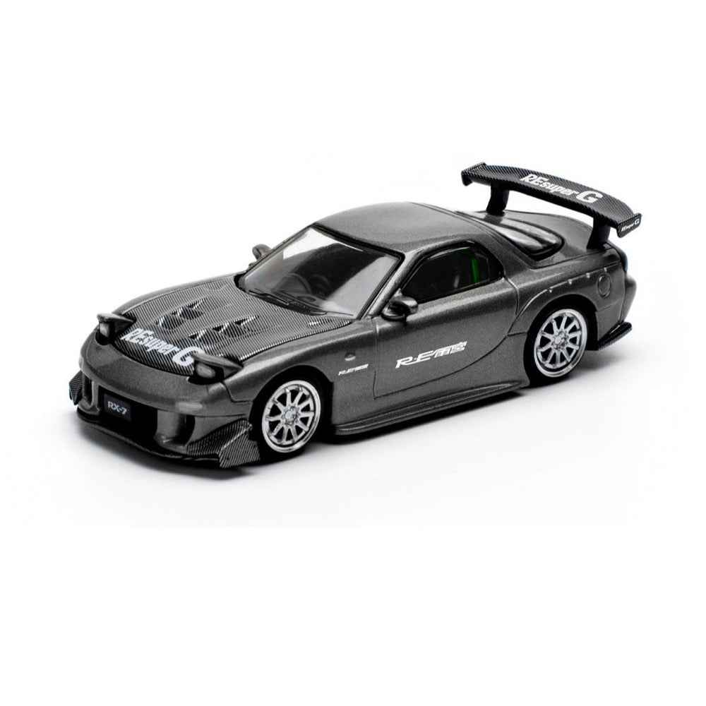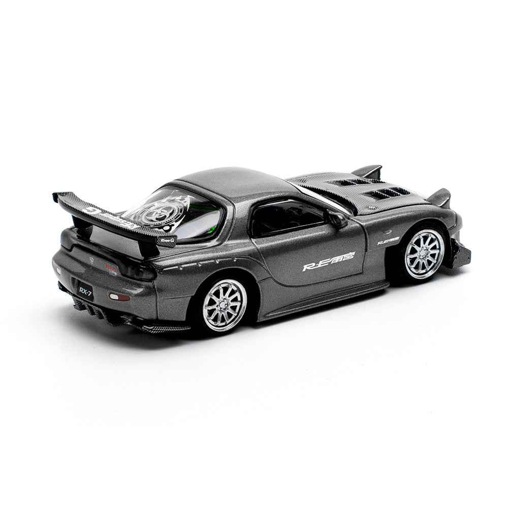Mazda RX7 (FD) "RE Amemiya" Widebody RHD (Right Hand Drive) Gunmetal Gray Metallic with Carbon Hood 1/64 Diecast Model Car by Pop Race