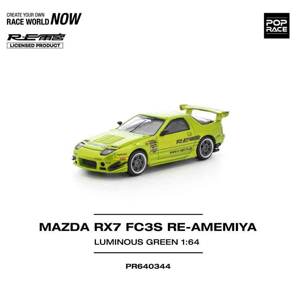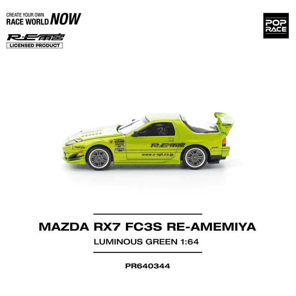 Pop Race 64-0344 1/64 Mazda RX7 FC3S Re-Amemiya Luminous Green
