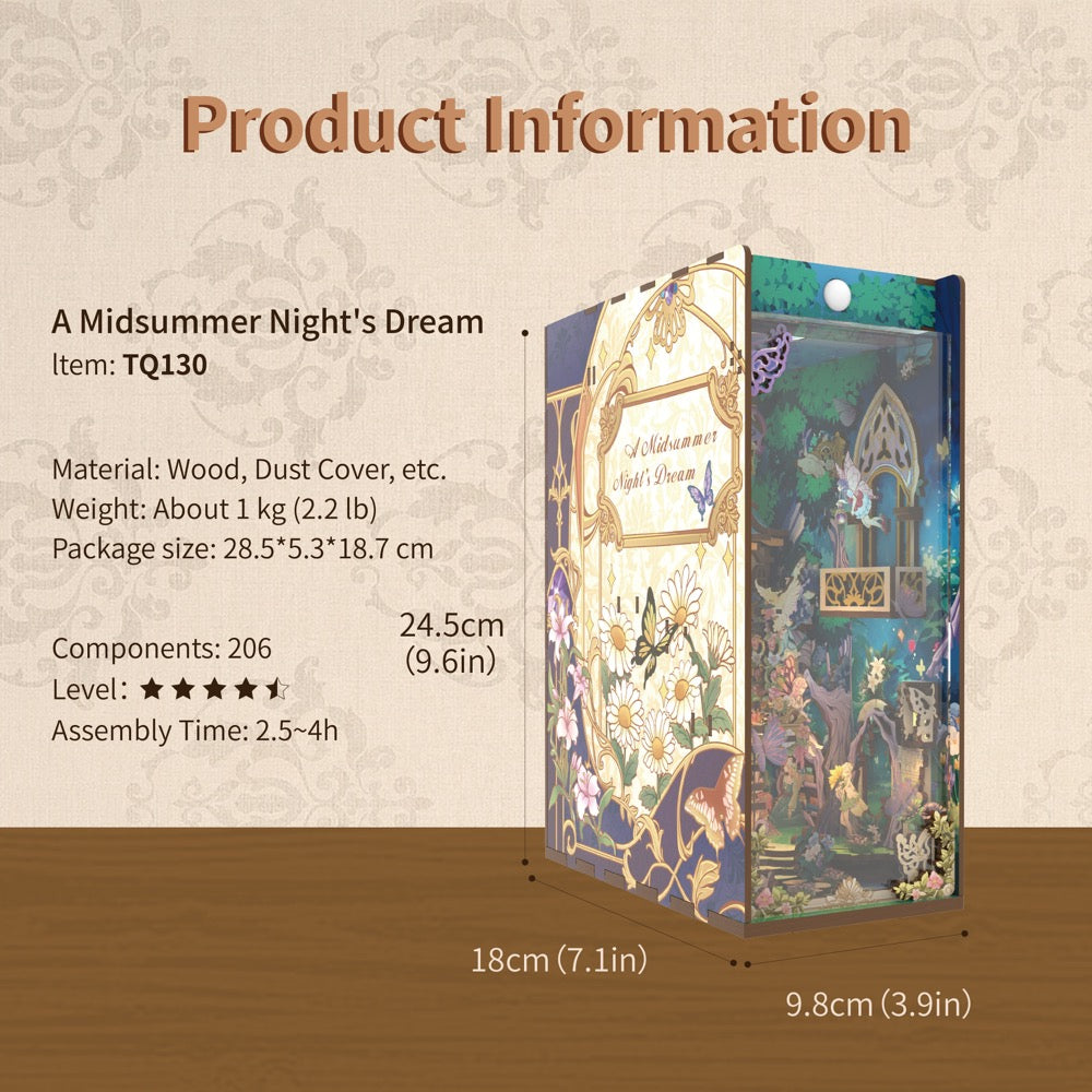 Step into the enchanting world of Shakespeare's A Midsummer Night's Dream with this captivating DIY Book Nook Kit. This whimsical scene transports you to a magical forest where fairies dance under the moonlight, and the veil between reality and dream fades away. With intricate details inspired by the play's mystical setting, this kit brings to life the serene beauty and mystery of the enchanted woods where love, magic, and mischief intertwine.
