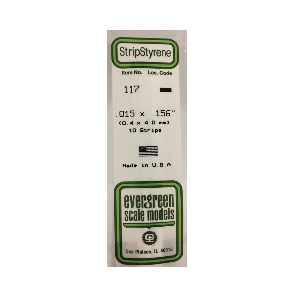 Evergreen 00117 Styrene Strips 0.015 x 0.156 x 14in / 0.38mm x 4mm x 36cm - 10