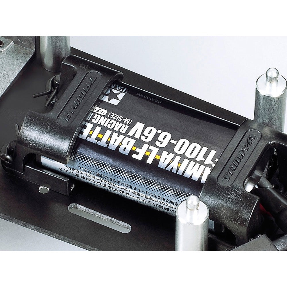 • Lightweight and durable 2.5mm thick FRP chassis plate is compatible with small compact battery sizes measuring no bigger than 70 x 38 x 20 mm.