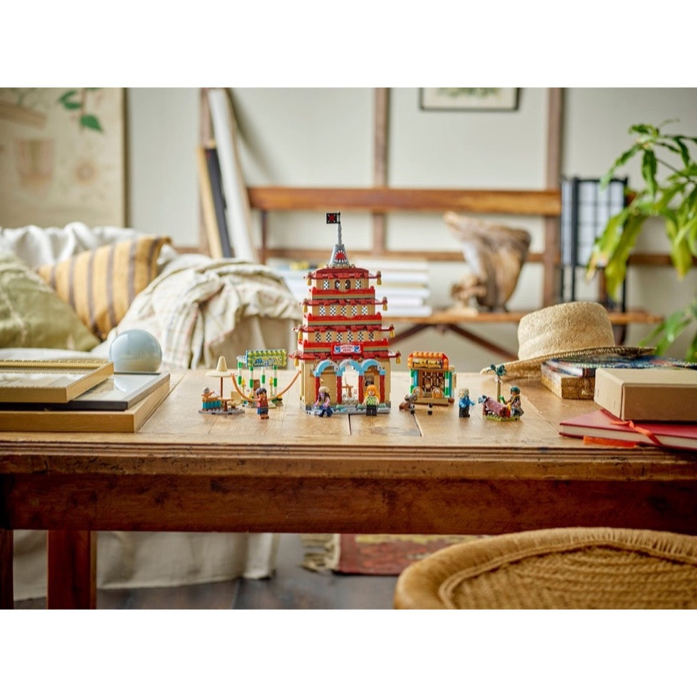 926-piece playset – The pagoda building measures over 11 in. (29 cm) high, 6 in. (16 cm) wide and 4 in. (10 cm) deep