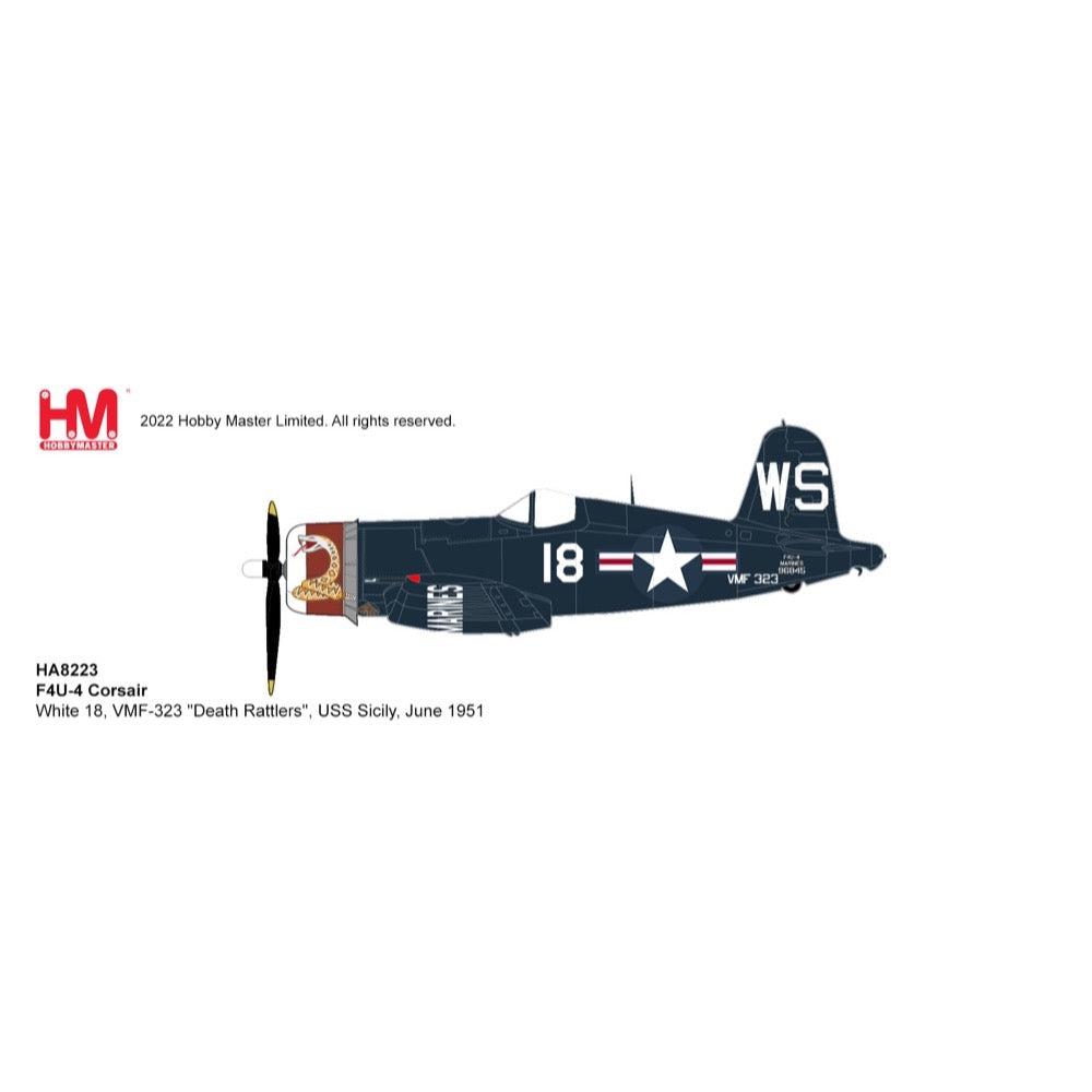 Hobby Master HA8223 1/48 F4U-4 Corsair White 18 VMF-323 Death Rattlers USS Sicily June 1951 with 8 HVAR Rockets