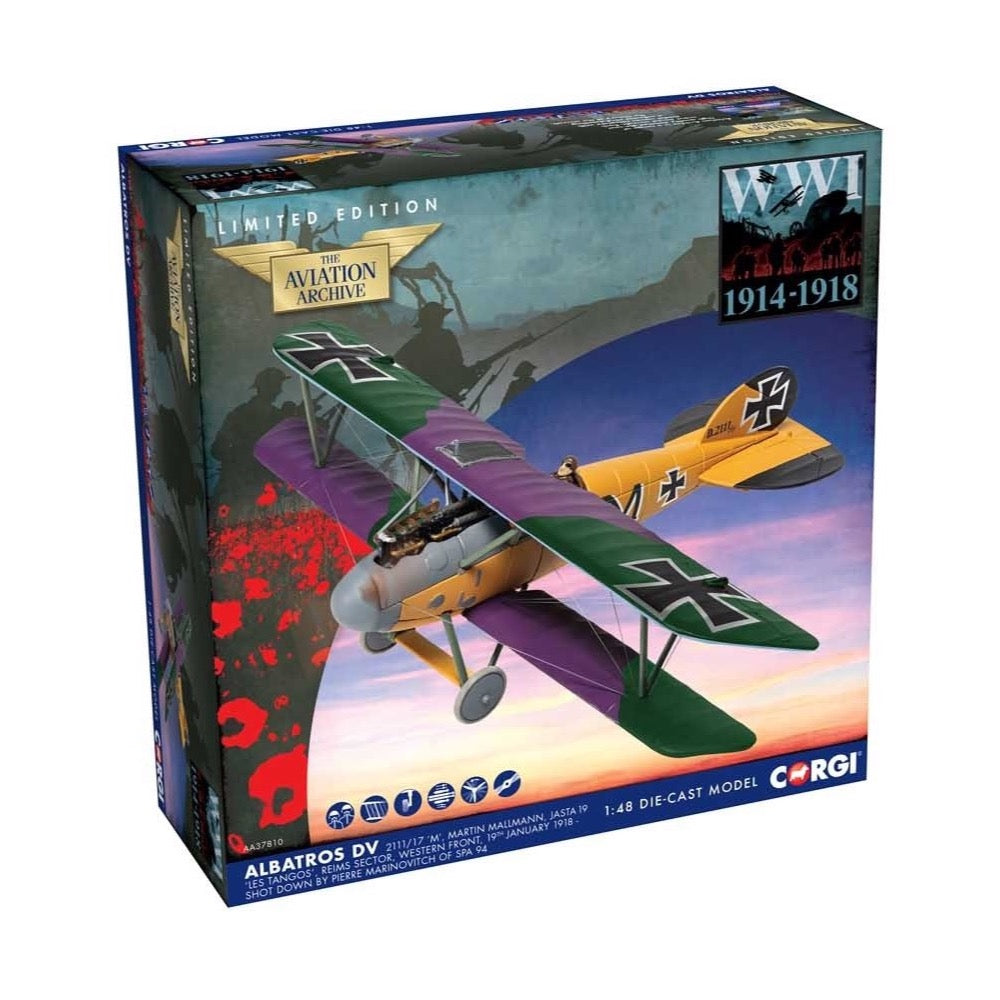 Corgi AA37810 1/48 Albatros D.V 2111/17 M Martin Mallmann Jasta 19 Les Tangos Western Front Jan 1918 Shot down by The Grim Reapers Diecast Aircraft