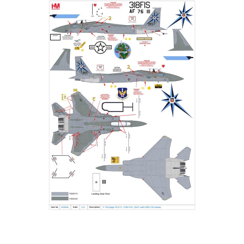 Hobby Master 4544 1/72 F-15A Eagle 76-0111, 318th FIS, USAF with ASM-135 missile