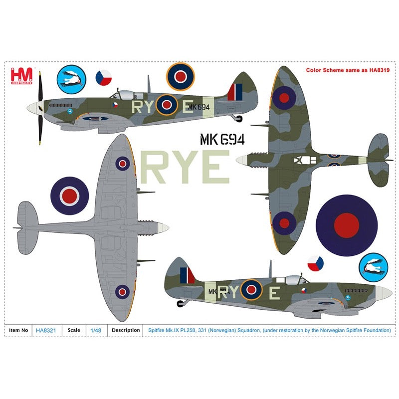 Hobby Master 8325 1/48 Spitfire Mk.IXc MK694, F/Lt. Jaroslav Dobrovolny, 313 Sqn