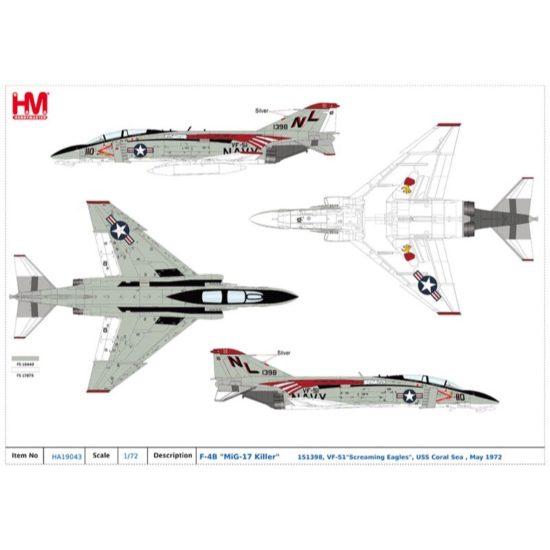 Hobby Master 19043 1/72 McD F-4B Phantom II USN MiG-17 Killer 151398, VF-51 Screaming Eagles, USS Coral Sea , May 1972