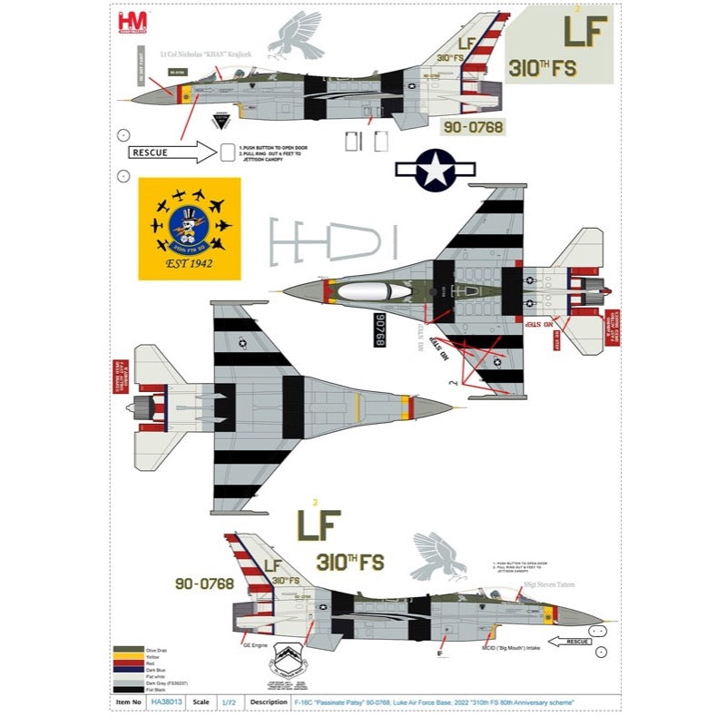 Hobby Master 38013 1/72 Lockheed F-16C Fighting Falcon USAF 56th FW, 310th FS, #90-0768 Passionate Patsy, Luke AFB, AZ, Squadron 80th Anniversary 2022