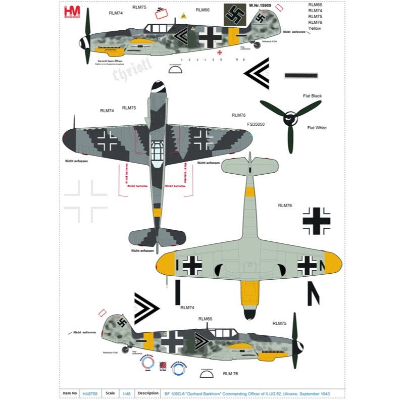 Hobby Master 8758 1/48 BF 109G-6 Gerhard Barkhorn Commanding Officer of II./JG 52, Ukraine,