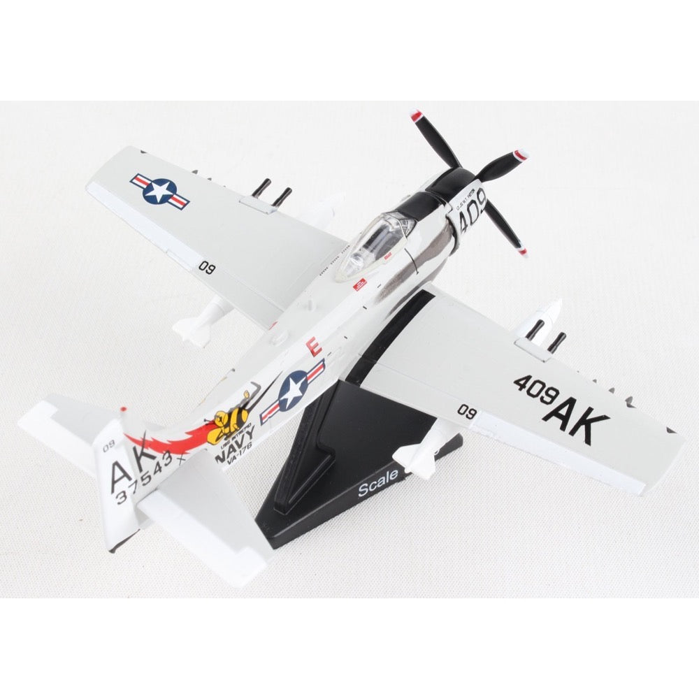The Douglas A-1 Skyraider is a piston-powered, propeller driven military attack aircraft that was operated by the United States Navy, the United States Marine Corps and the United States Air Force untill the early 1970s. The A-1 Skyraider had excellent low-speed maneuverability and carried a large amount of ordnance with long loiter capabilities that made it competitive against jet-powered airplanes.