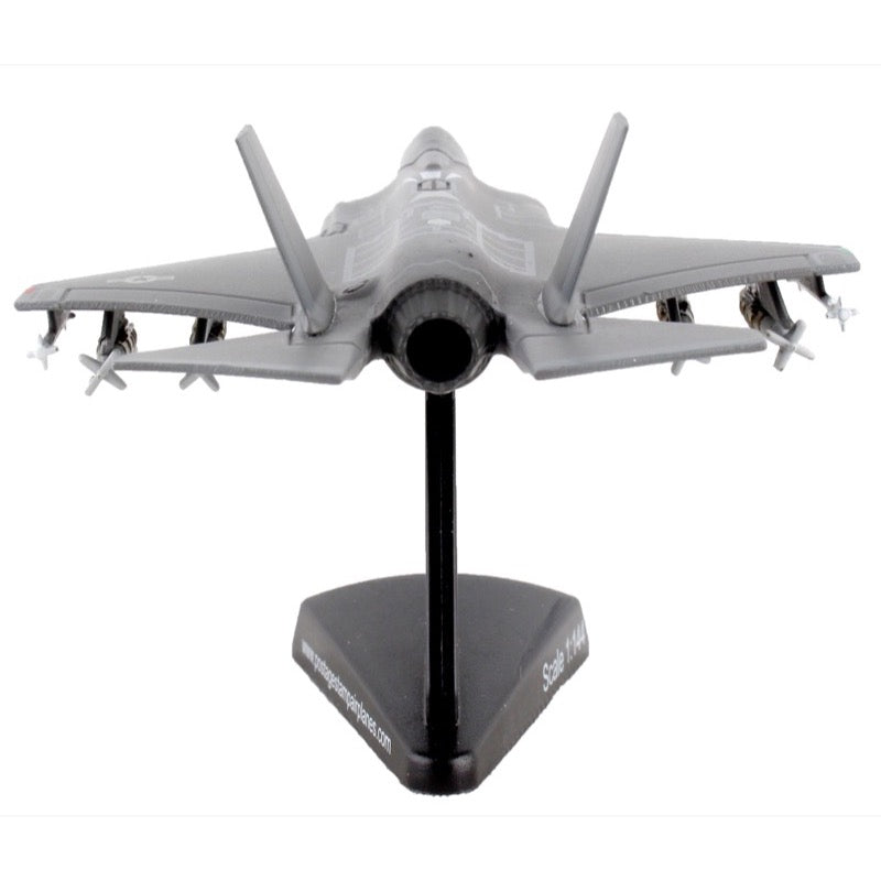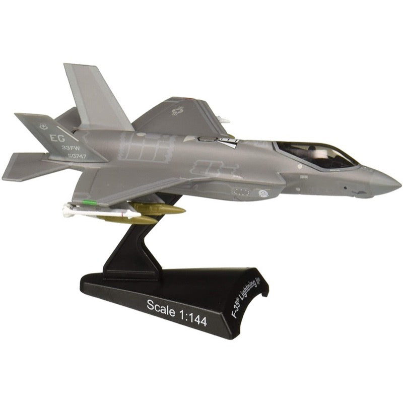 F-35 Lightning II USAF AF08-0747 'First In Service' model is 1/144 scale and approximately 4 1/8 inches long with 2 7/8 inch wingspan. The F-35 variant A is a conventional take-off and landing (CTOL) variant of Lockheed Martin's Joint Strike Fighter program. The F-35 is a stealth multi-role fighter aircraft used by the US Air Force and allied forces. It is the smallest, lightest version and is designed to replace both the F-16 Fighting Falcon and A-10 Thunderbolt IITM in the USAF fleet. The F-35 is a fifth-generation fighter, combining advanced stealth capabilities with fighter aircraft speed and agility. The F-35 is armed with a variety of weapons and can carry an impressive 18,000 pound payload on six external pylons and two internal bays. July 2011 the 58th Fighter Squadron of the 33rd Fighter Wing at the F-35 Integrated Training Center, Eglin AFB, FL received the first two F-35 planes. The U.S. Air Force declared the F-35 combat ready in August 2016.
