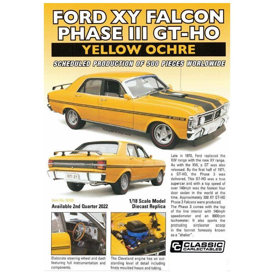 Classic Carlectables 18769 1/18 Ford XY Falcon Phase III GT-HO Yellow Ochre
