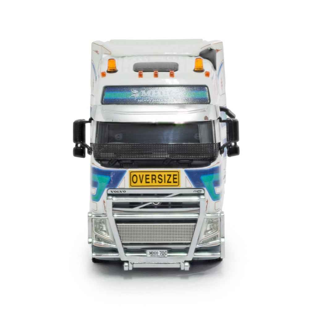• Die-cast metal body with authentic detailing: replicates the Volvo FH4 cabin, chassis and heavy-haul livery in Mactrans colours.