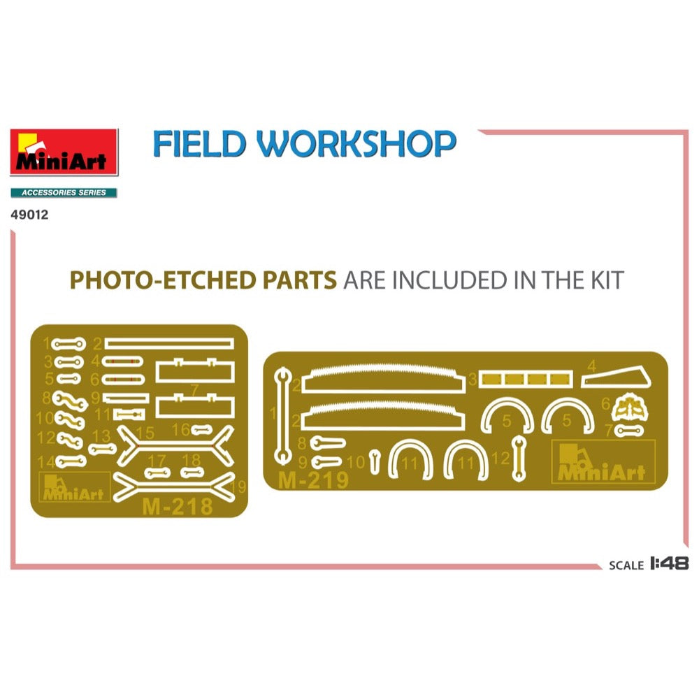 Kit contains models of: gas cylinders, ladders, table, buckets, cart, anvil, beams, jack stand and tools in 1:48 Scale.