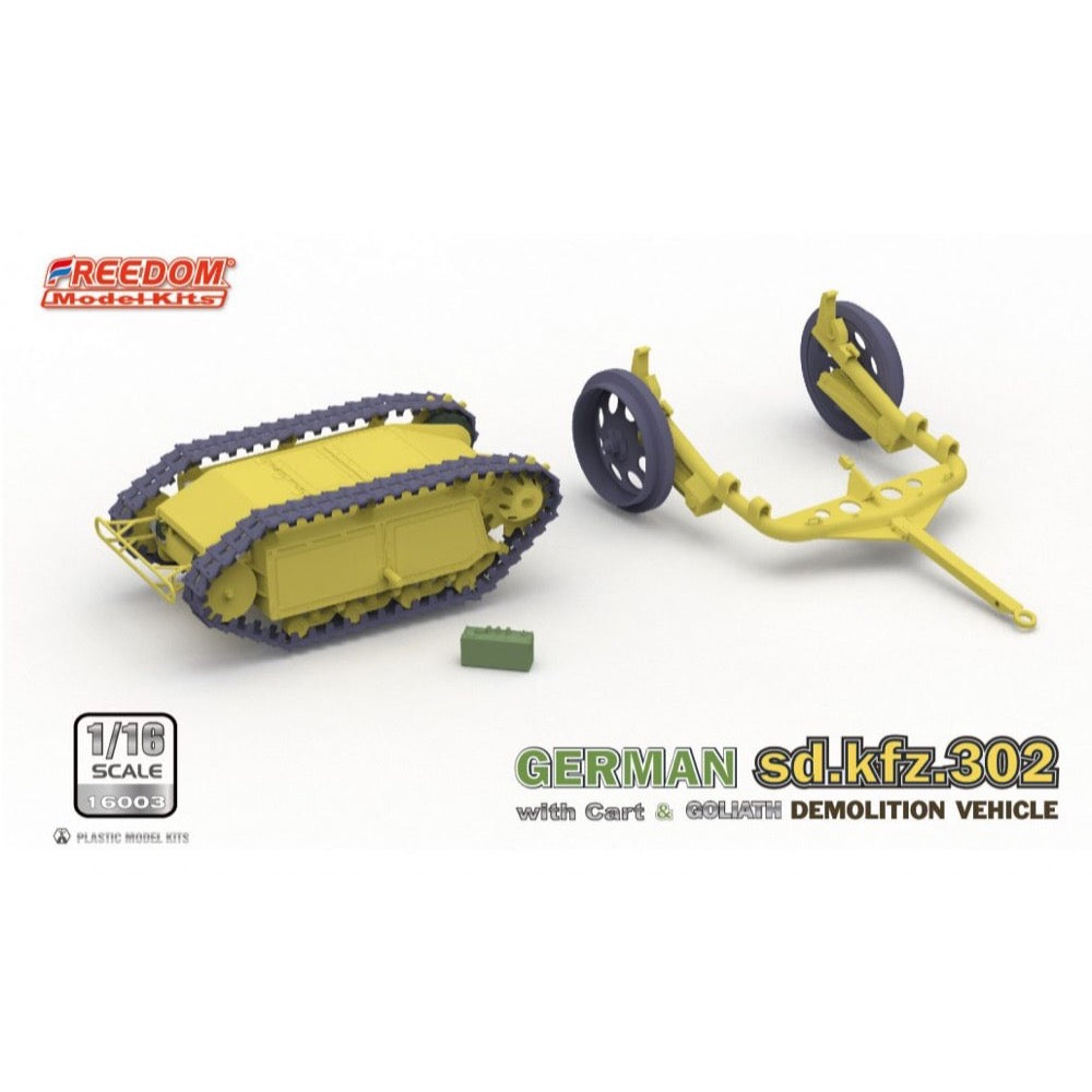 Freedom Models 16003SP 1/16 Sd.kfz. 302 Goliath Demolition Vehicle with Cart and German Soldier 1944 Observation