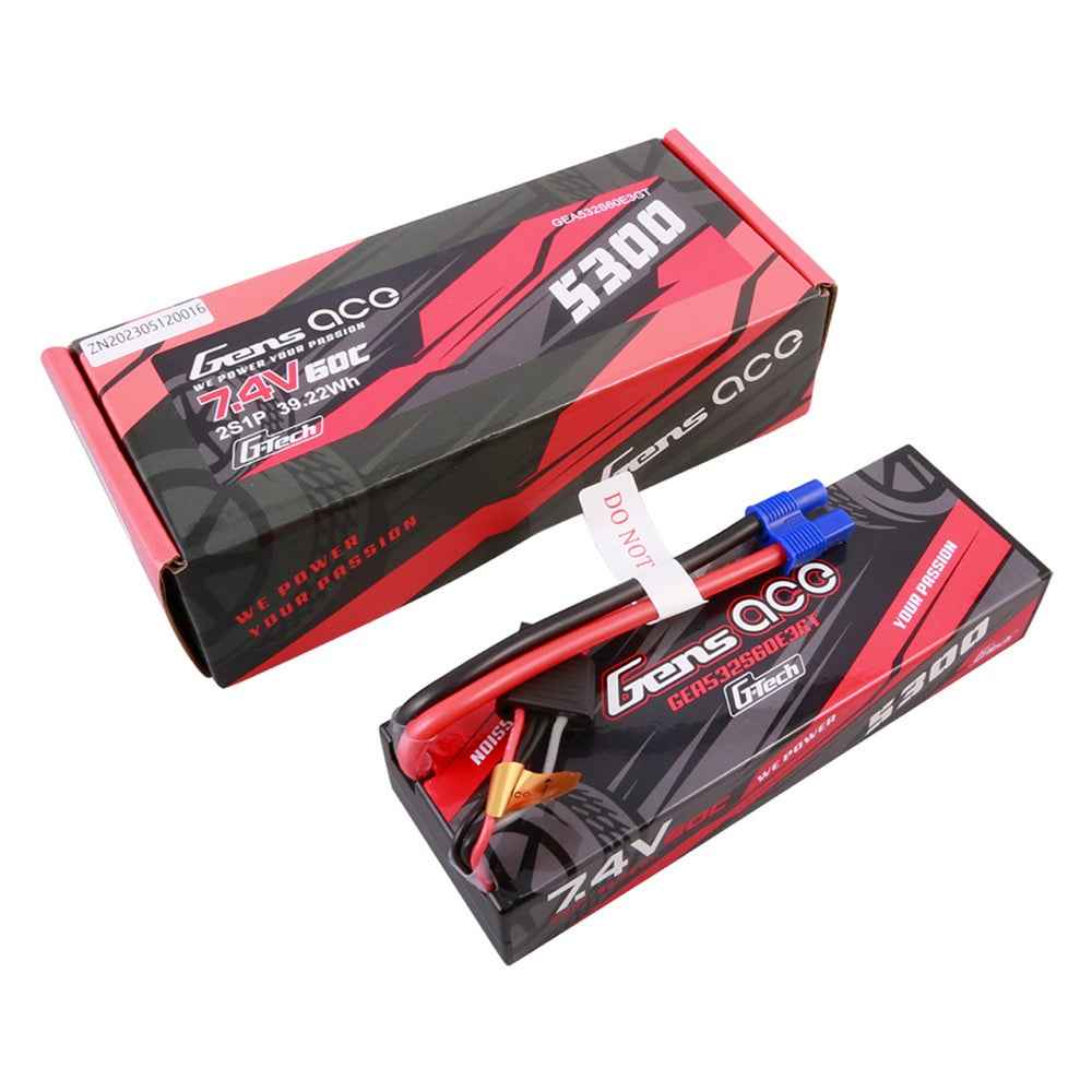 Gens Ace G-Tech 2S 5300mAh 60C 7.4V Hardcase/Hardwired Lipo Battery (EC3)