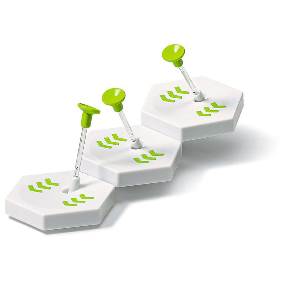 Let's go! The launcher propels your balls across vast chasms in an incredible way! Combine the launcher with your GraviTrax Starter set to make your balls travel even further. How far will your balls go?