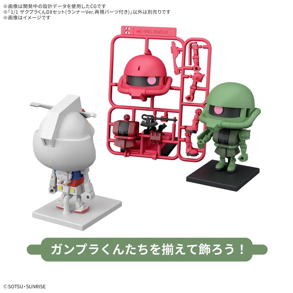 Zaku-kun joins Bandai's "Gunpla-kun" model-kit lineup, which conveys the fun of Gunpla! You can display Zaku-kun fully assembled, or still on its runners! The main body is made of PS material. The Heat Hawk, Zaku Machine Gun, and Zaku Bazooka are all included, and the monoeye can move left and right.