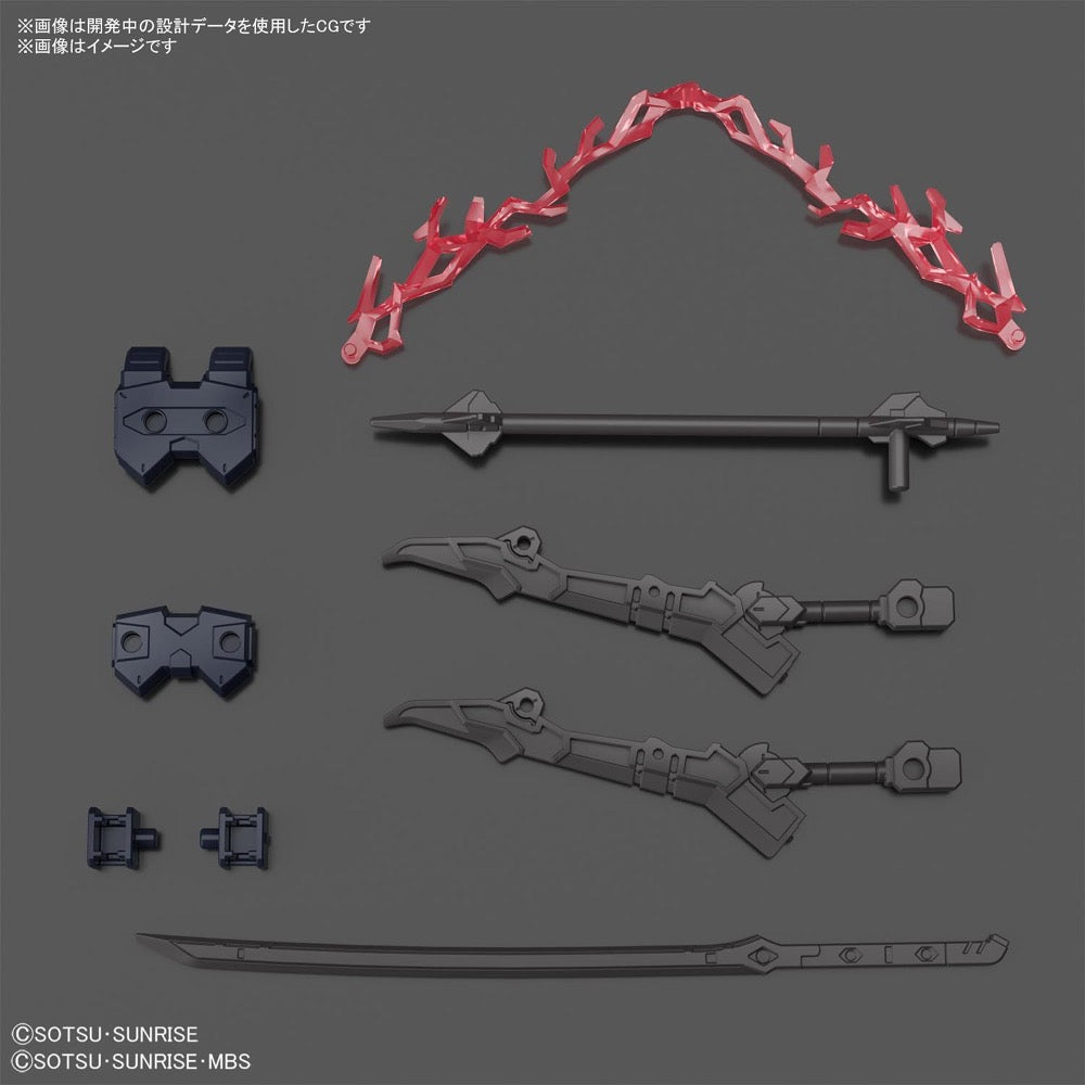 Gundam Barbataurus is a bold combination of Gundam Barbatos and a centaur! Its twin blades can transform into a handgun mode, and they can also be combined and reassembled into a large bow; Gundam Barbataurus can show off its superior posability by getting into the classic bow-pulling pose! The tail blade at the rear of its centaur form uses lead wires for posability, too, and a sword similar to that wielded by Gundam Barbatos is included.