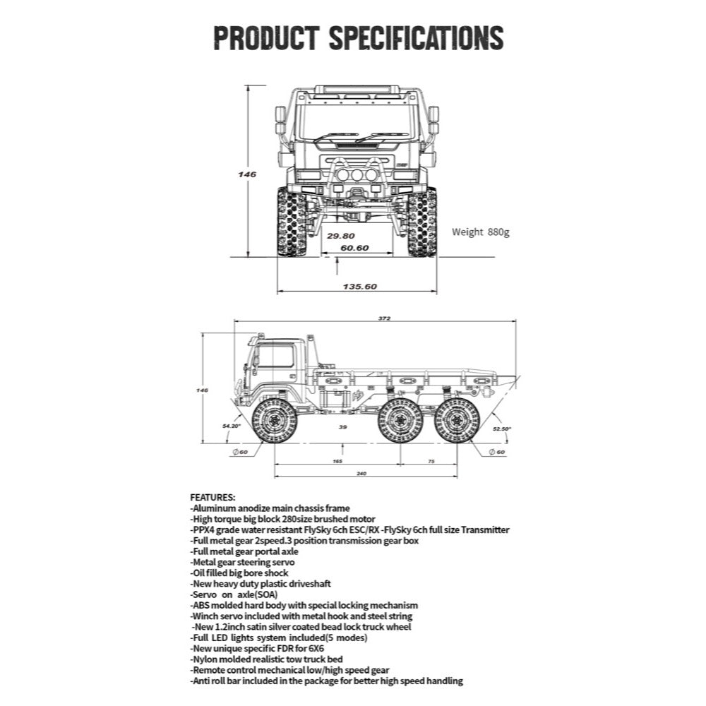 • Flysky 6ch ESC/Receiver Combo ensures seamless integration and precise control over your vehicle's functions.