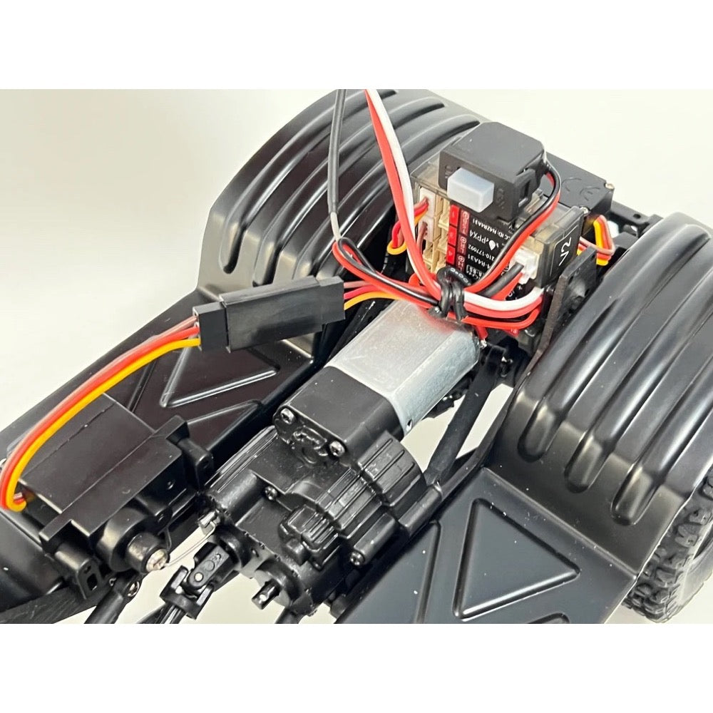 Built upon the successful CR-18P platform, this new micro hauler stands out as the coolest rig in the CR-18P lineup. It boasts an ABS molded hard body pack with meticulously detailed body parts and a full LED lighting system controlled directly from the transmitter right out of the box. Engineered for performance and durability, it features proven full metal gear portal axles along with a full metal gear 2-speed transmission and big block motor delivering exceptional low-speed modulation and impressive trailing speed.