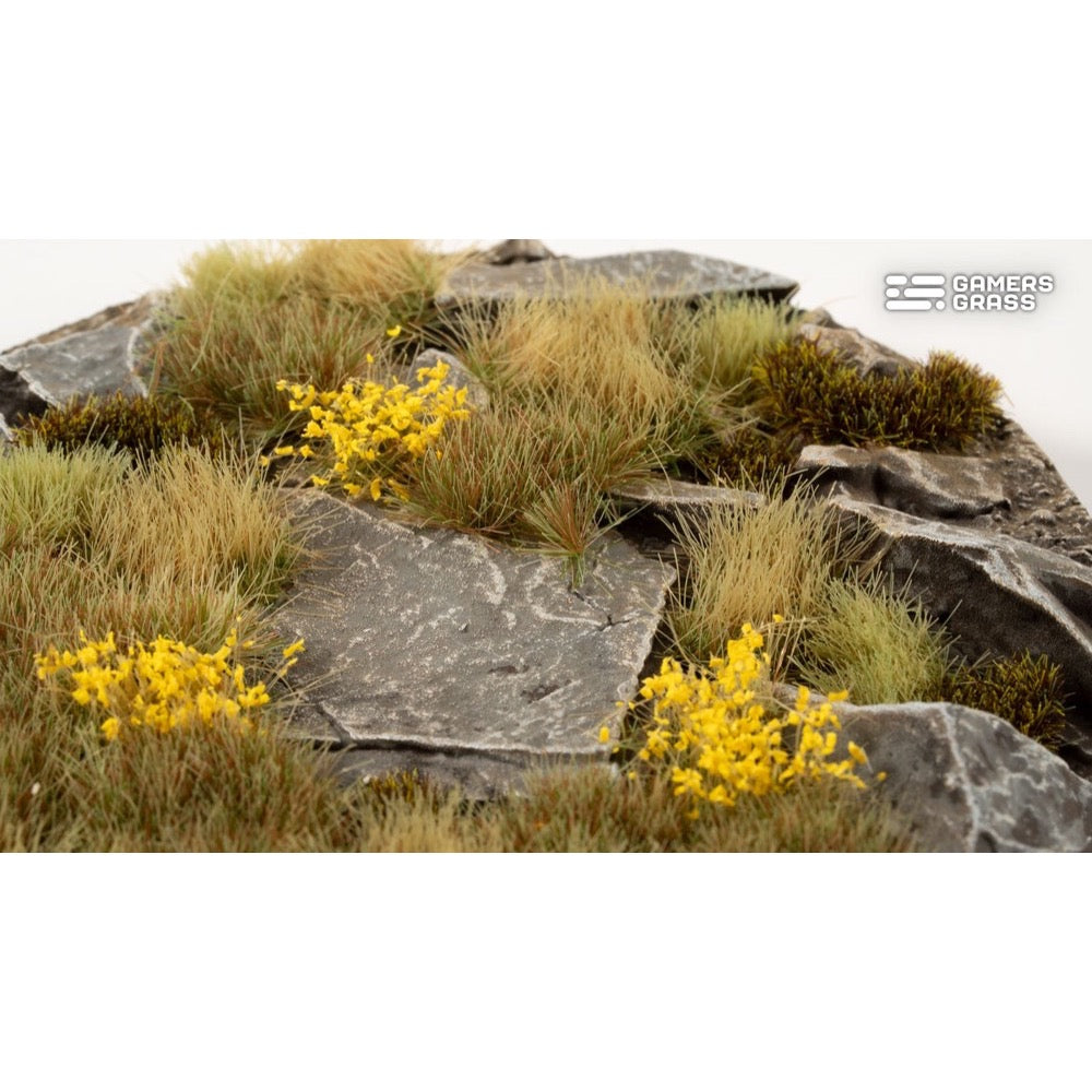 Shrubby landscape with rocky outcrops and dense plant cover with a few beautiful yellow flowers among a charming combination of green vegetation. They can be used to reproduce a vast range of mediterranean habitats like heaths, garrigues and maquis on climates with warm dry summers and cold mild winters.
