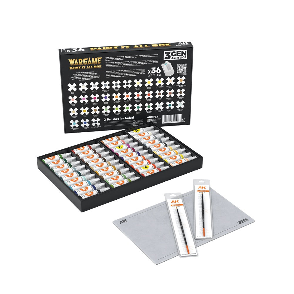 AK Interactive 11782 Wargame Paint It All Box 36 Colours Acrylic Paint Set (3rd Generation)