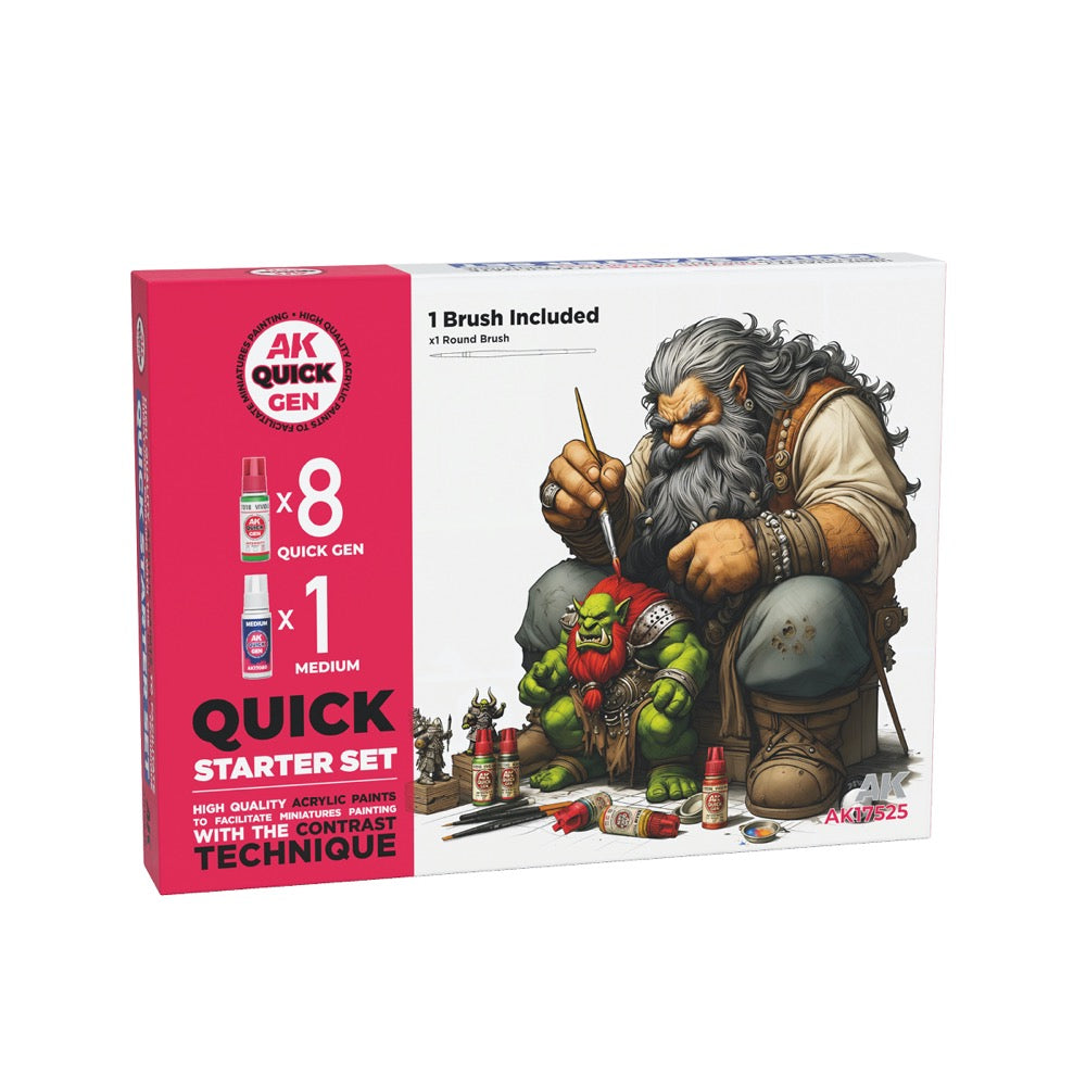 AK Interactive 17525 Quick Gen Starter Set 8 Colours + 1 Medium + 1 Brush