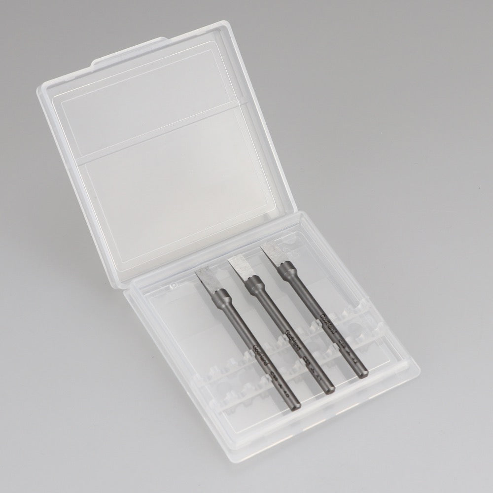 • Since the thickness of the shaft is unified to Φ3 mm, it can be replaced without replacing the collet chuck of the pin vice
