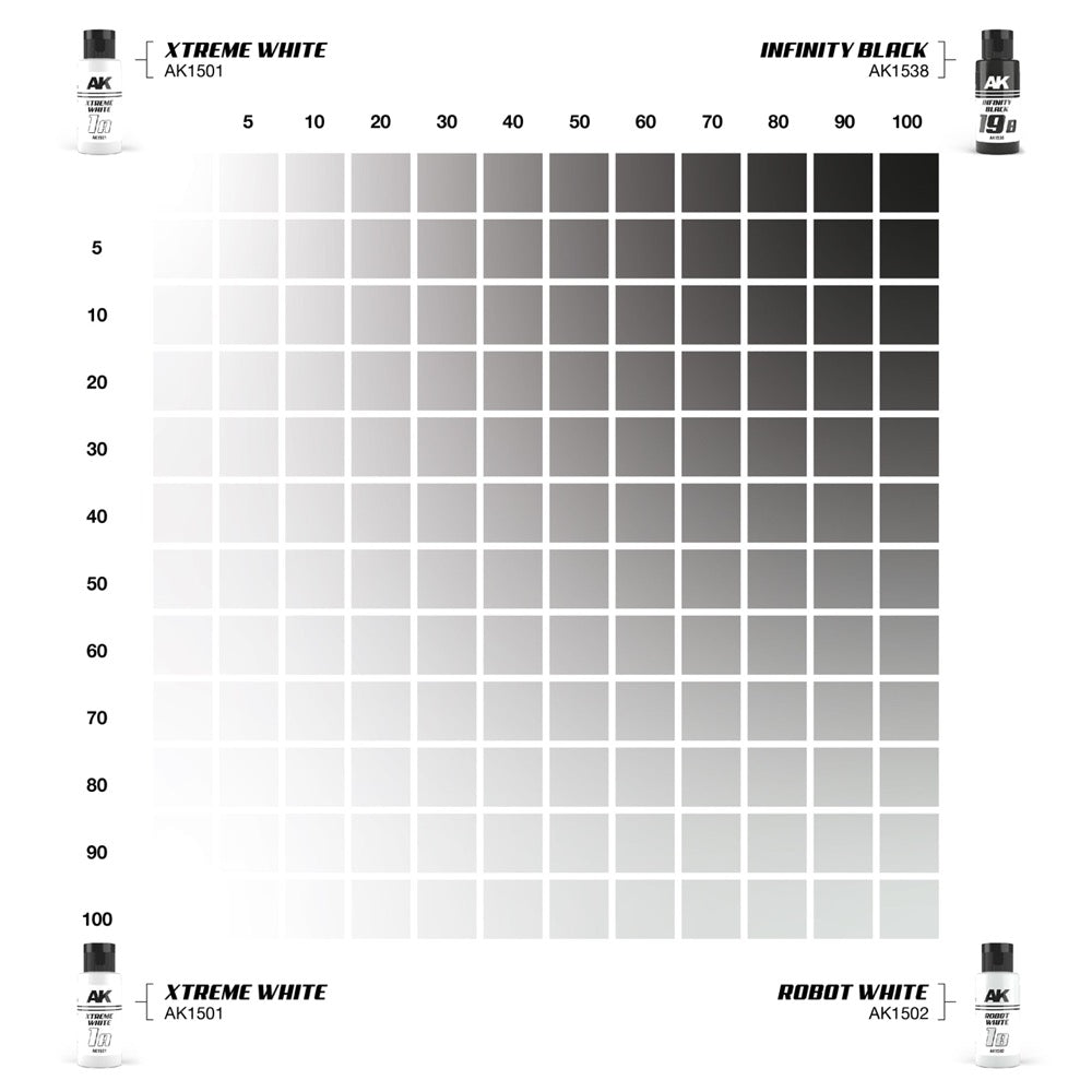 AK Interactive AK1543 Dual Exo Set 1 1A Xtreme White and 1B Robot White