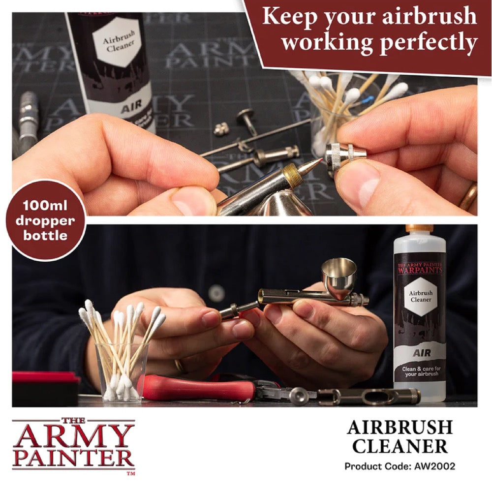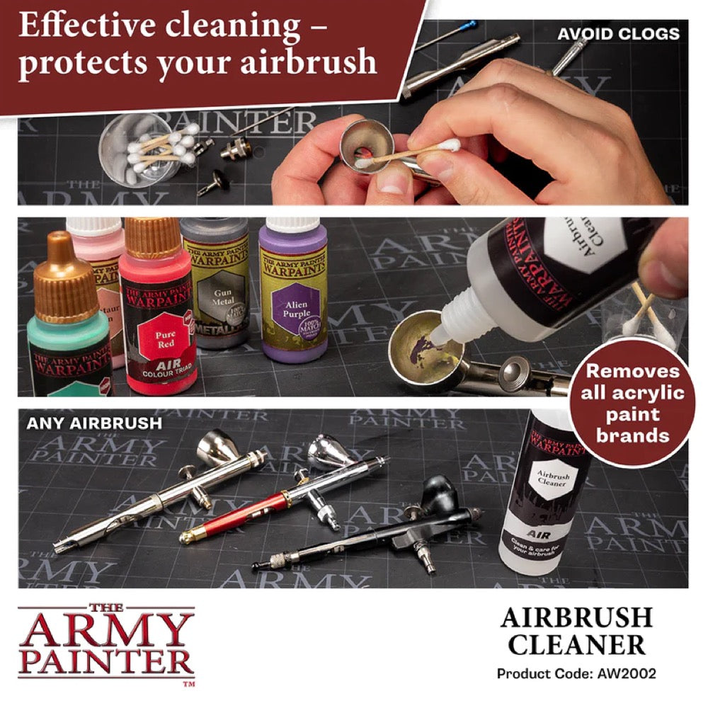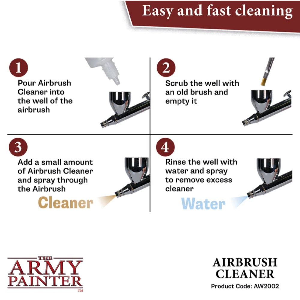 The Army Painter Airbrush Cleaner is a non-toxic, water-based cleaning product specially formulated to remove any acrylic paint residue from hard-to-reach areas of your airbrush. The Airbrush Cleaner ensures optimal long term performance of your airbrush.
